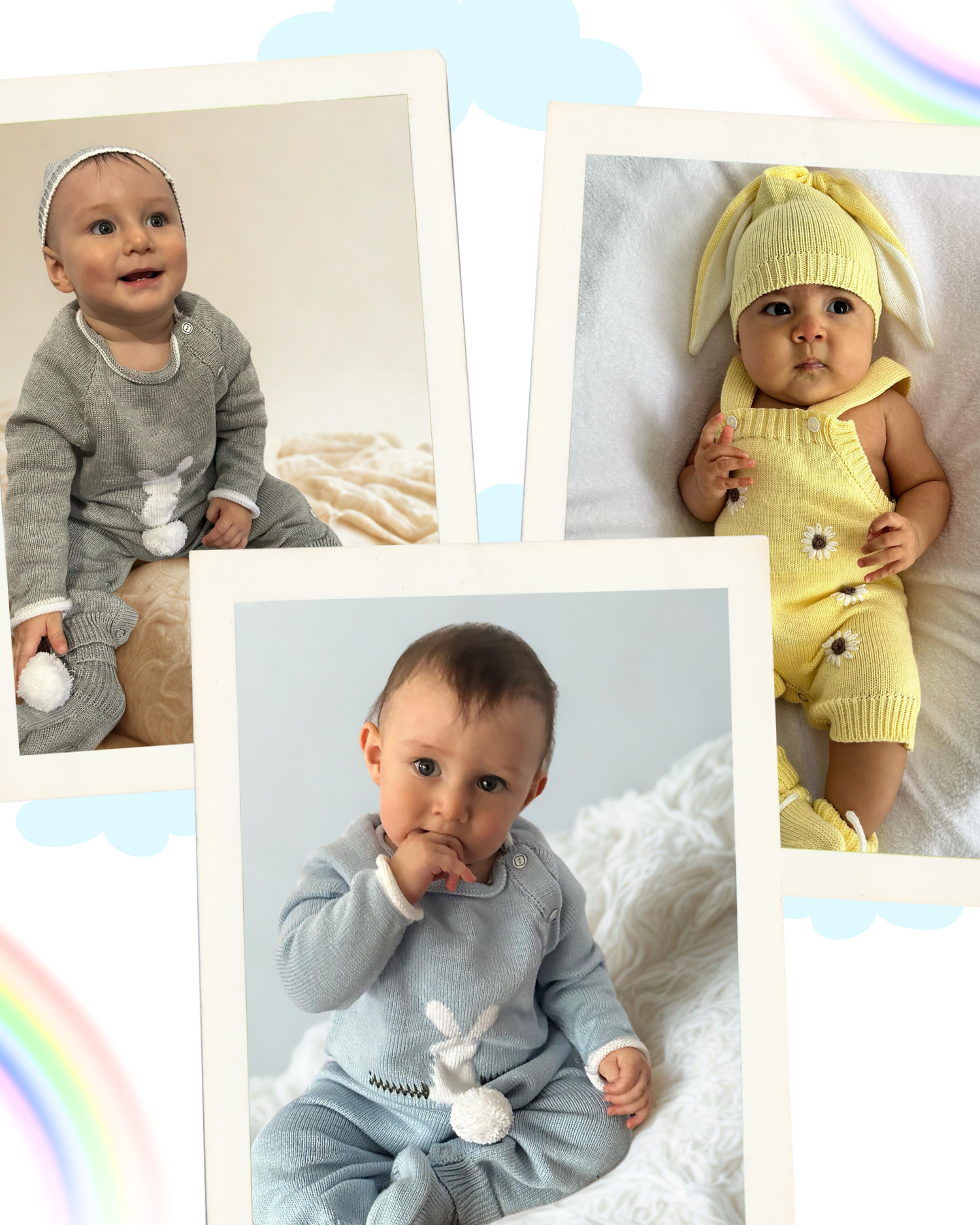 Explore our delightful collection of Pima cotton knitted baby outfits, perfect for hospital outfits, newborn first outfits, coming home outfits, baby photoshoots, or as a thoughtful baby gift.