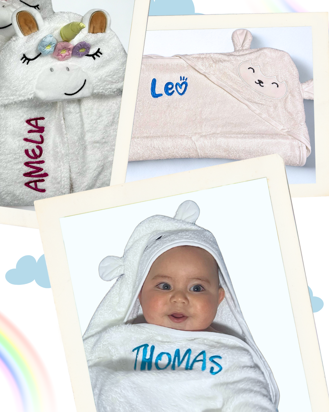 These baby bath towels are not your typical newborn baby bath towel. These are super soft, big and are made of what appears to be very good quality fabric. The little hood with the ears and face are so cute sitting on a baby’s head. This is truly a beautiful, one of a kind gift.