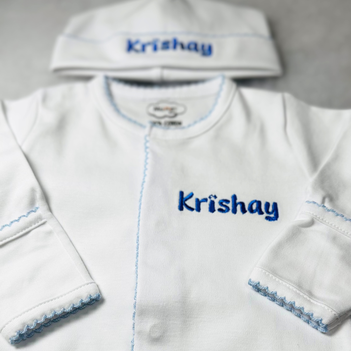- Max number of letters 10, the more characters the smaller the font size will be. Names will be stitched as submitted. Please ensure you check your spelling.